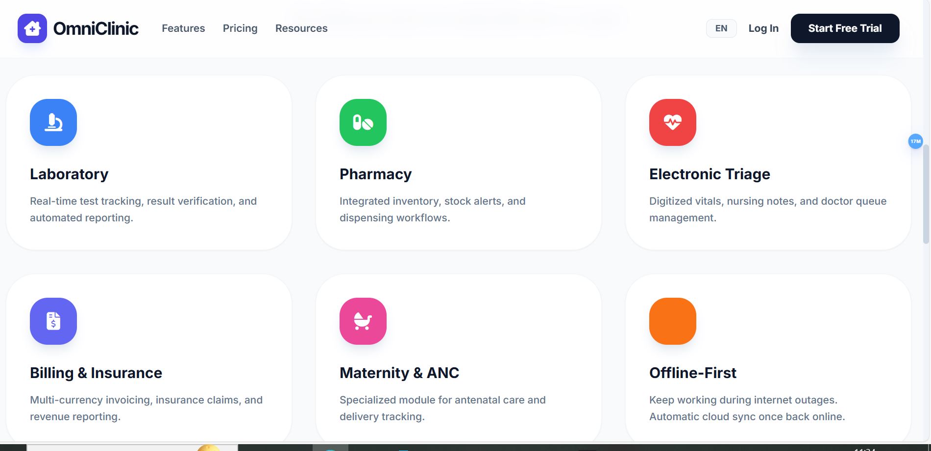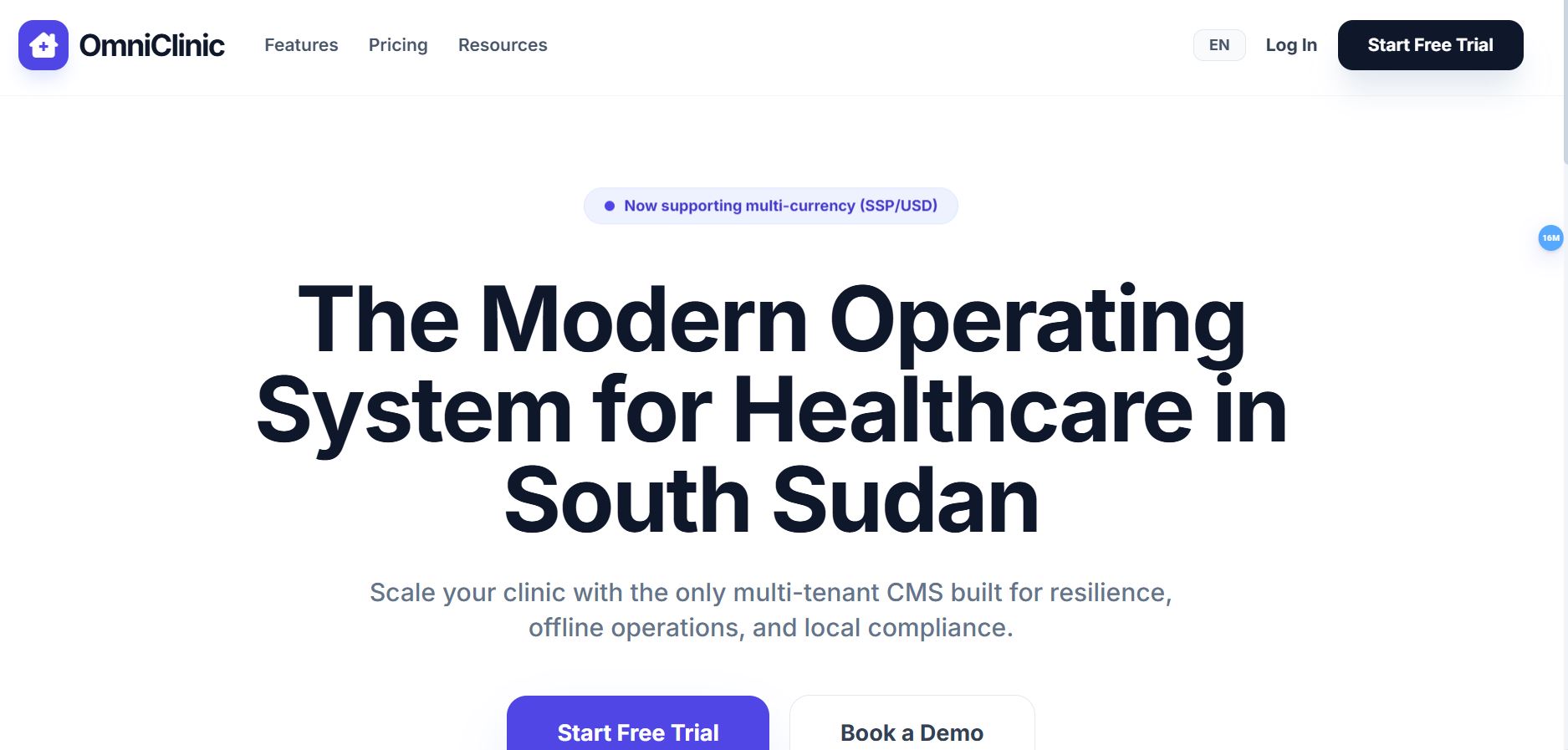 OmniClinic is a complete, multi-tenant healthcare management system designed specifically for clinics and hospitals operating in South Sudan and similar environments. Built with offline-first technology, OmniClinic ensures uninterrupted operations during internet outages, with automatic cloud synchronization once connectivity is restored. Whether you run a small clinic or a high-traffic hospital, OmniClinic provides all the core modules needed to manage patients, staff, billing, and medical workflows—securely and efficiently. Core Modules Included Laboratory Real-time test tracking, result verification, and automated reporting. Pharmacy Integrated inventory management, low-stock alerts, and dispensing workflows. Electronic Triage Digitized vitals, nursing notes, and doctor queue management. Billing & Insurance Multi-currency invoicing, insurance claims processing, and revenue reporting. Maternity & ANC Dedicated antenatal care and delivery tracking module. Offline-First Architecture Continue working during internet outages with automatic sync when back online. Who This Is For Private clinics Hospitals Medical centers NGO-supported health facilities Rural and urban healthcare providers Pricing Plans Basic – $49 / month Full Core CMS Up to 5 users 24/7 support Pro – $149 / month Full Core CMS Up to 20 users 24/7 support Enterprise – $499 / month Full Core CMS Unlimited users Priority 24/7 support