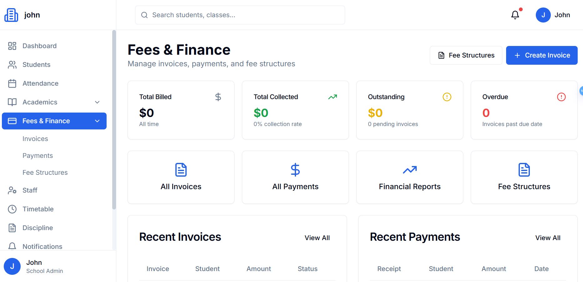 - Fees & payment tracking module