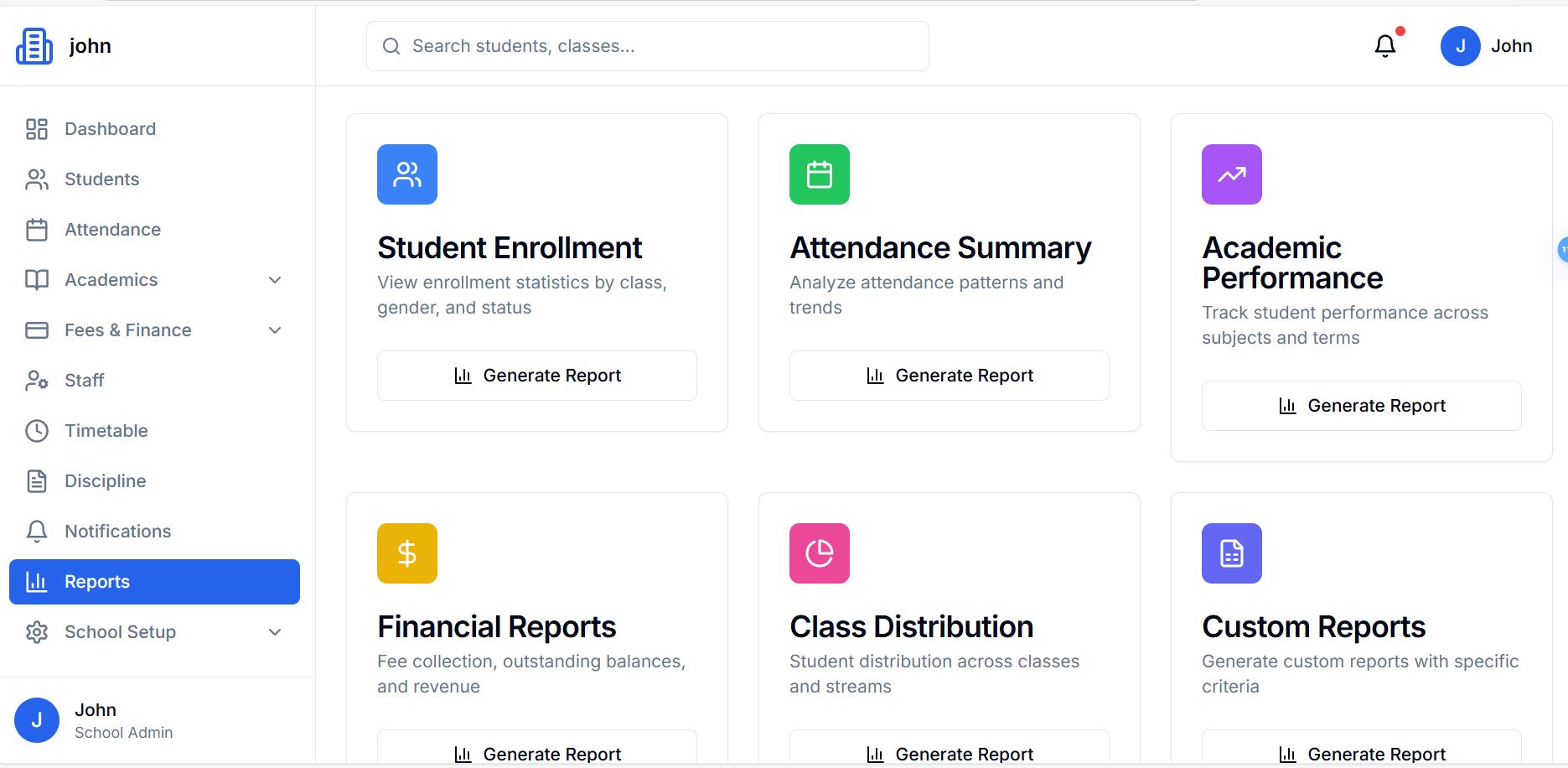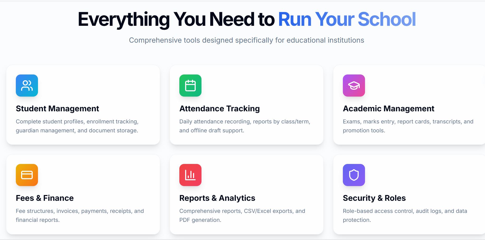 - Full School Management System (web-based)